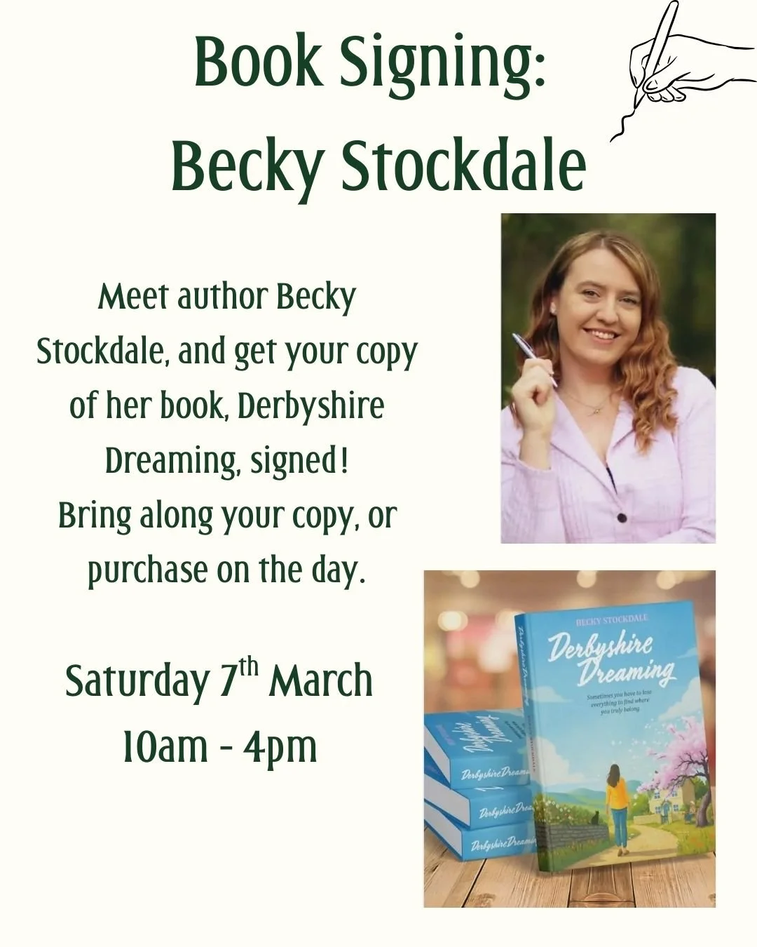 7th March: Book signing by Becky Stockdale, author of Derbyshire Dreaming. This book signing will take place in the Orangery (Garden Entry tickets required for access).