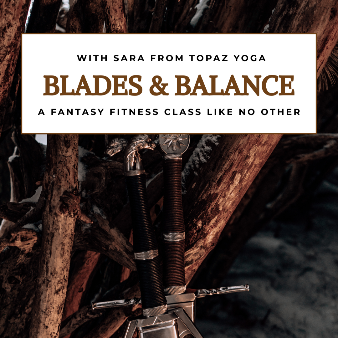 Step into a warrior’s flow. Blades & Balance is a small-group fantasy fitness class combining sword technique, yoga-inspired movement, and flexibility training.